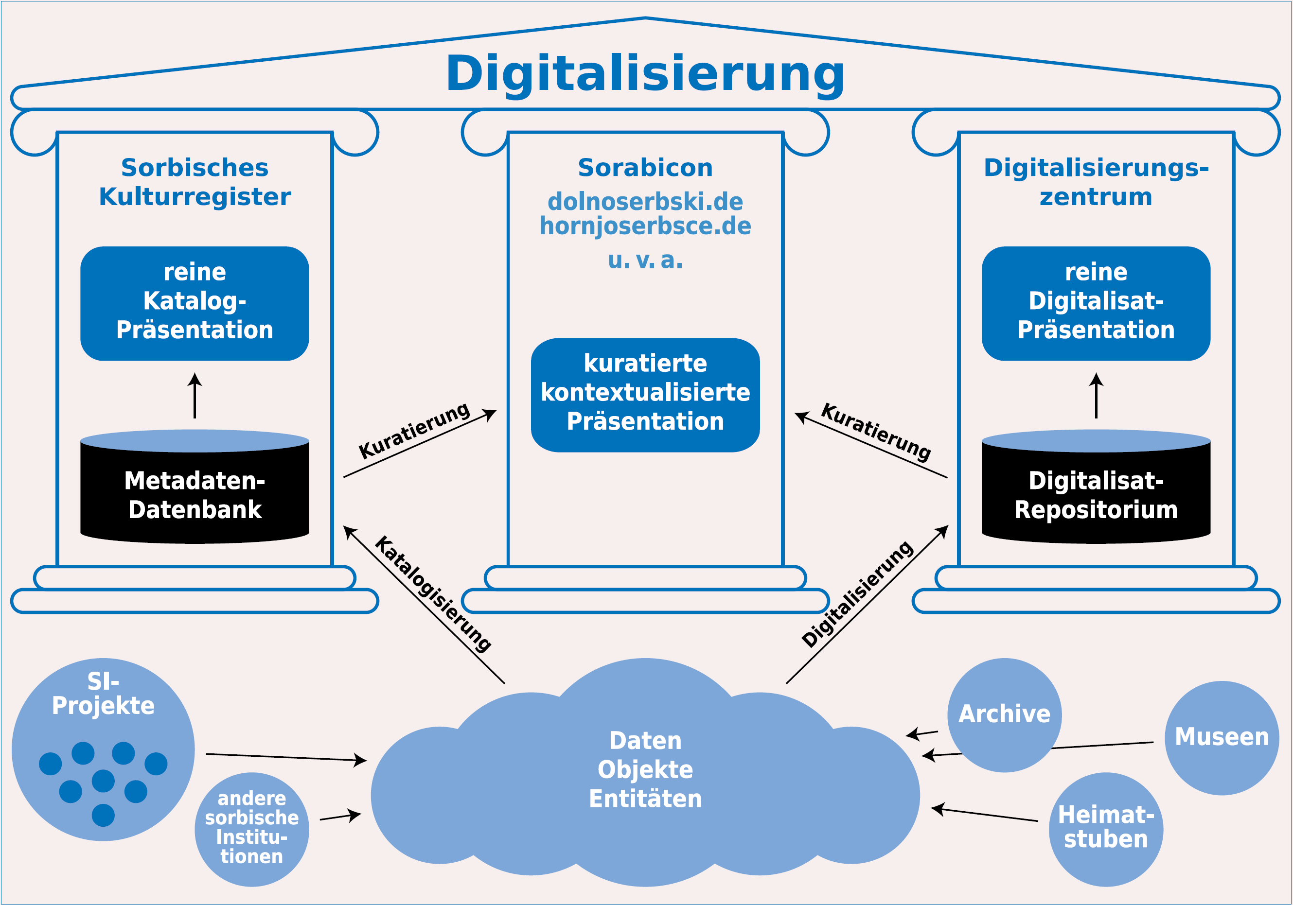 Quelle: Sorbisches Institut 2025: Digitalizacija serbskich kulturnych datow / Digitalisierung der sorbischen/wendischen Kulturdaten (Poster). URL: https://www.serbski-institut.de/wp-content/uploads/2021/11/A0-Druck_Digitalisierungsstrategie-SI.pdf, abgerufen am 25.03.2026.